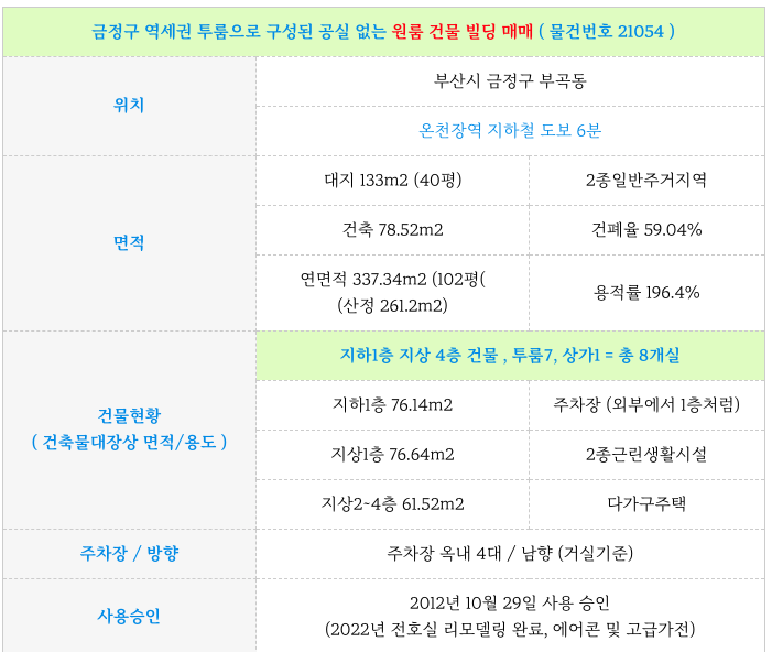 온천장역 역세권 투룸으로만 구성된 원룸 통 건물 빌딩 매매 물건 정보 정리 드립니다.