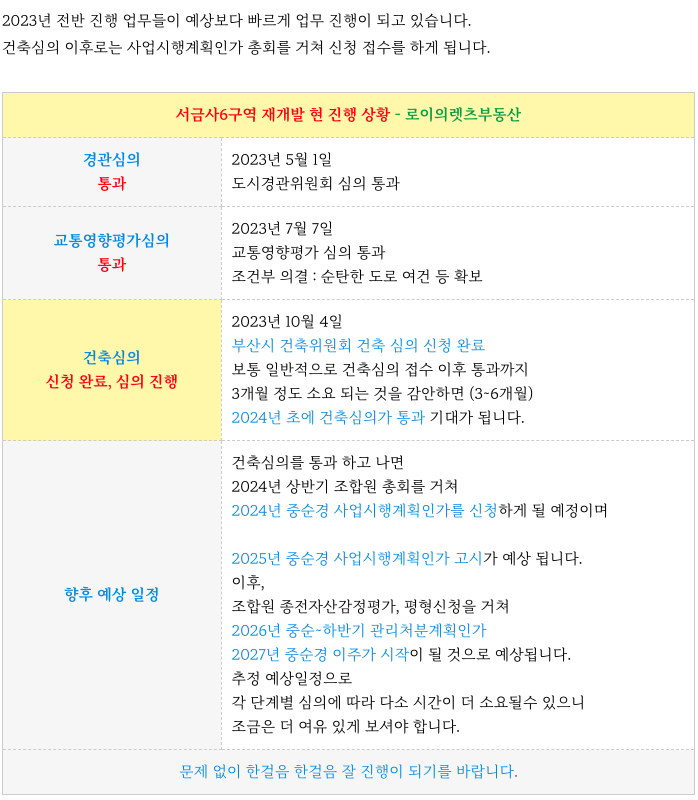 서금사6구역 재개발의 향후 예상일정등 추가 정보는 아래 페이지를 참고 부탁드립니다.