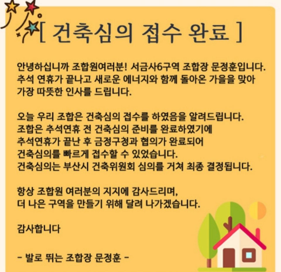 서금사6구역 재개발 은 건축심의를 접수하였습니다.