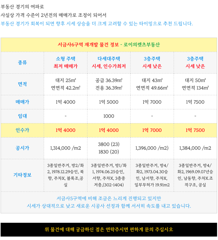 서금사6구역 재개발 현 시장 최저 소액 물건 정보 소개해 드리겠습니다.