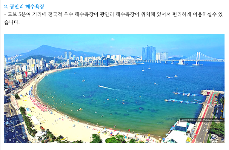 부산 광안리 해수욕장 바닷가를 도보로 이용 가능하면서도