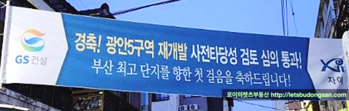 입지 초우수 광안5구역 재개발은 구역 지정 심의중에 있습니다.