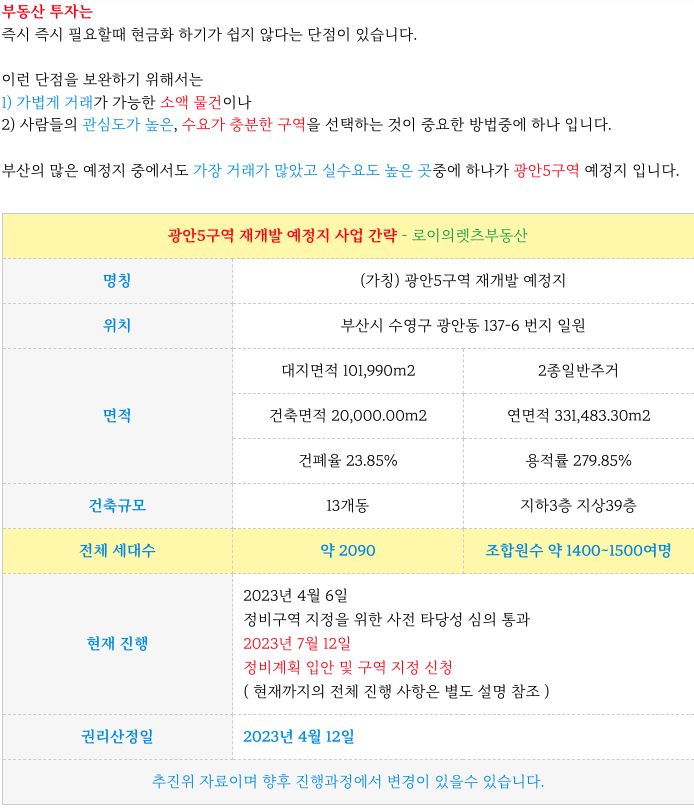 광안5구역 재개발 현 가능 좋은 소액 매물