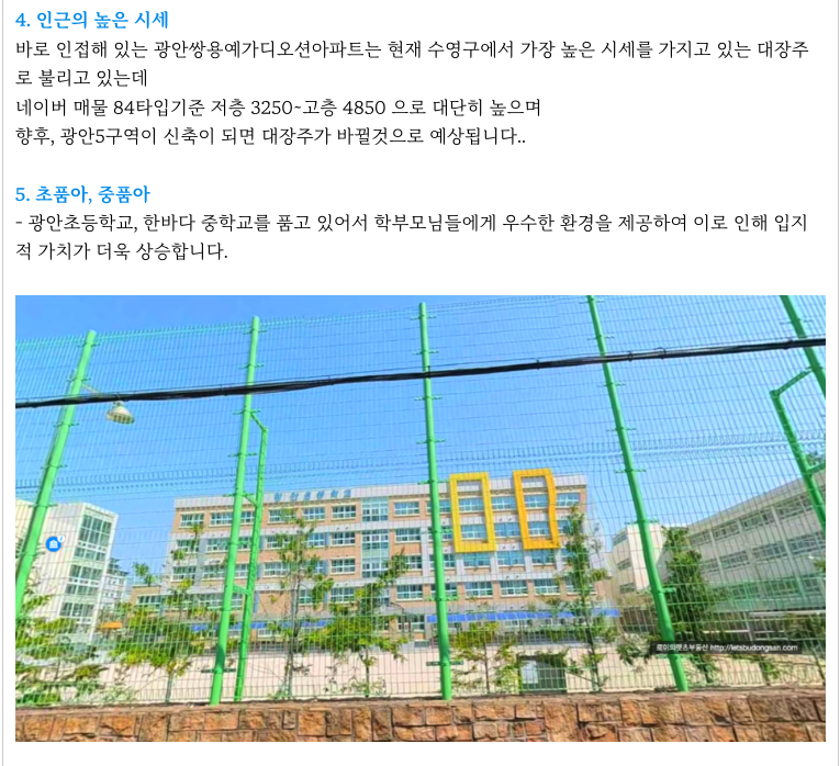 광안초등학교, 한바다 중학교를 품고 있는 초,중품아의 장점을 가지고 있으며
