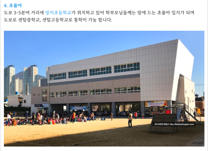 망미초등학교의 바로 인근으로 초품아로 불리울수 있으며