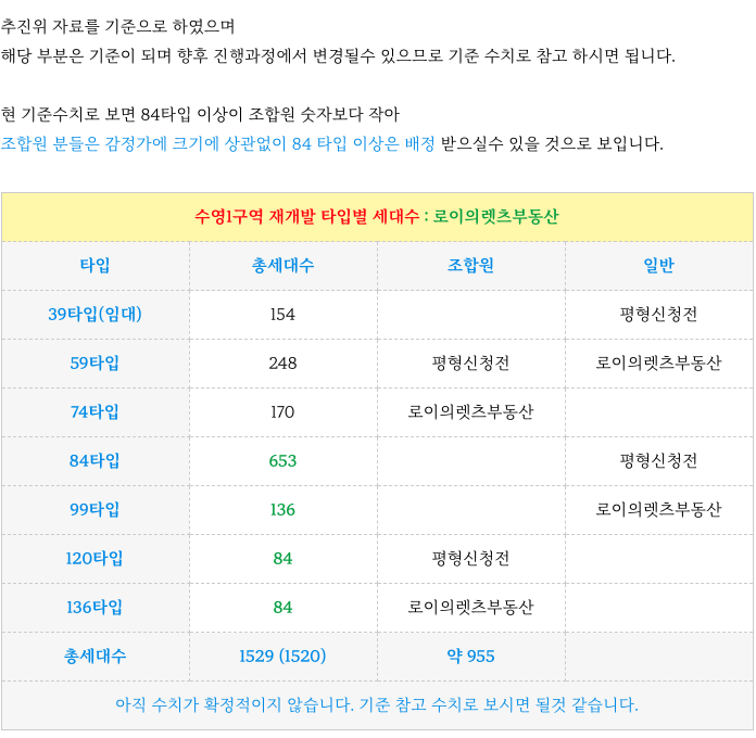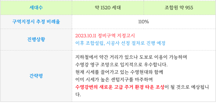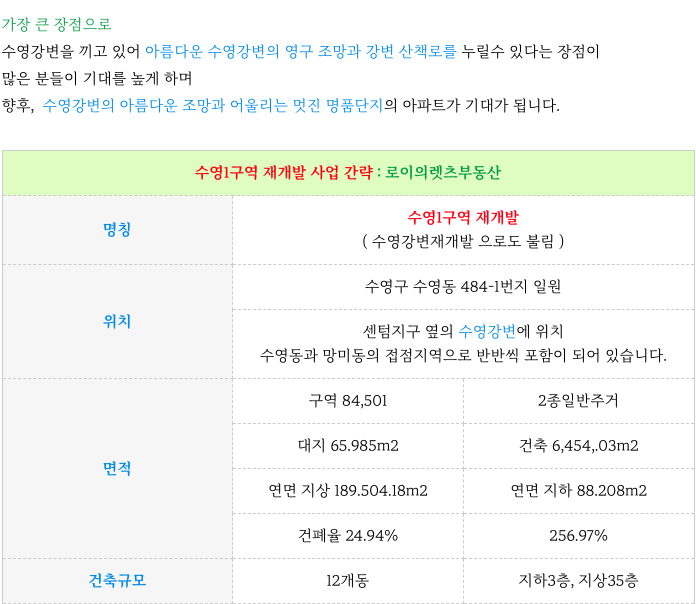 수영1구역 재개발의 특징을 다시한번 간략히 정리 드립니다.