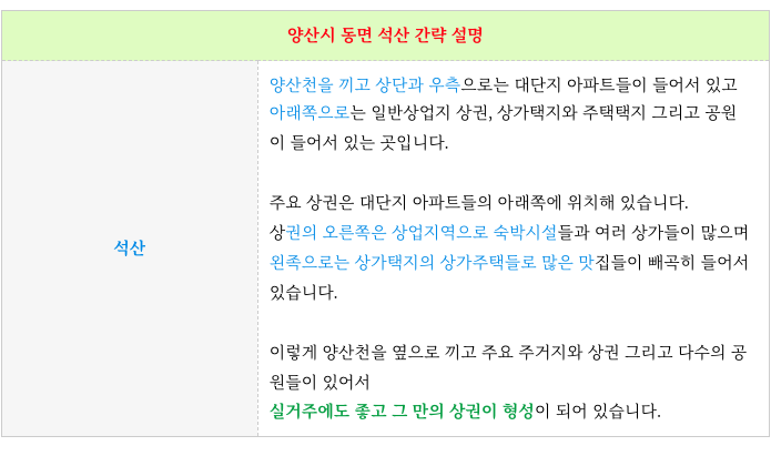 양산시 동면 석산 은 석산 신도시로 불리우는 곳으로