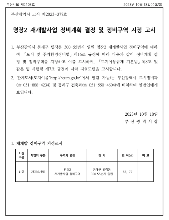 명장2구역 재개발 은 구역지정고시가 있었습니다.