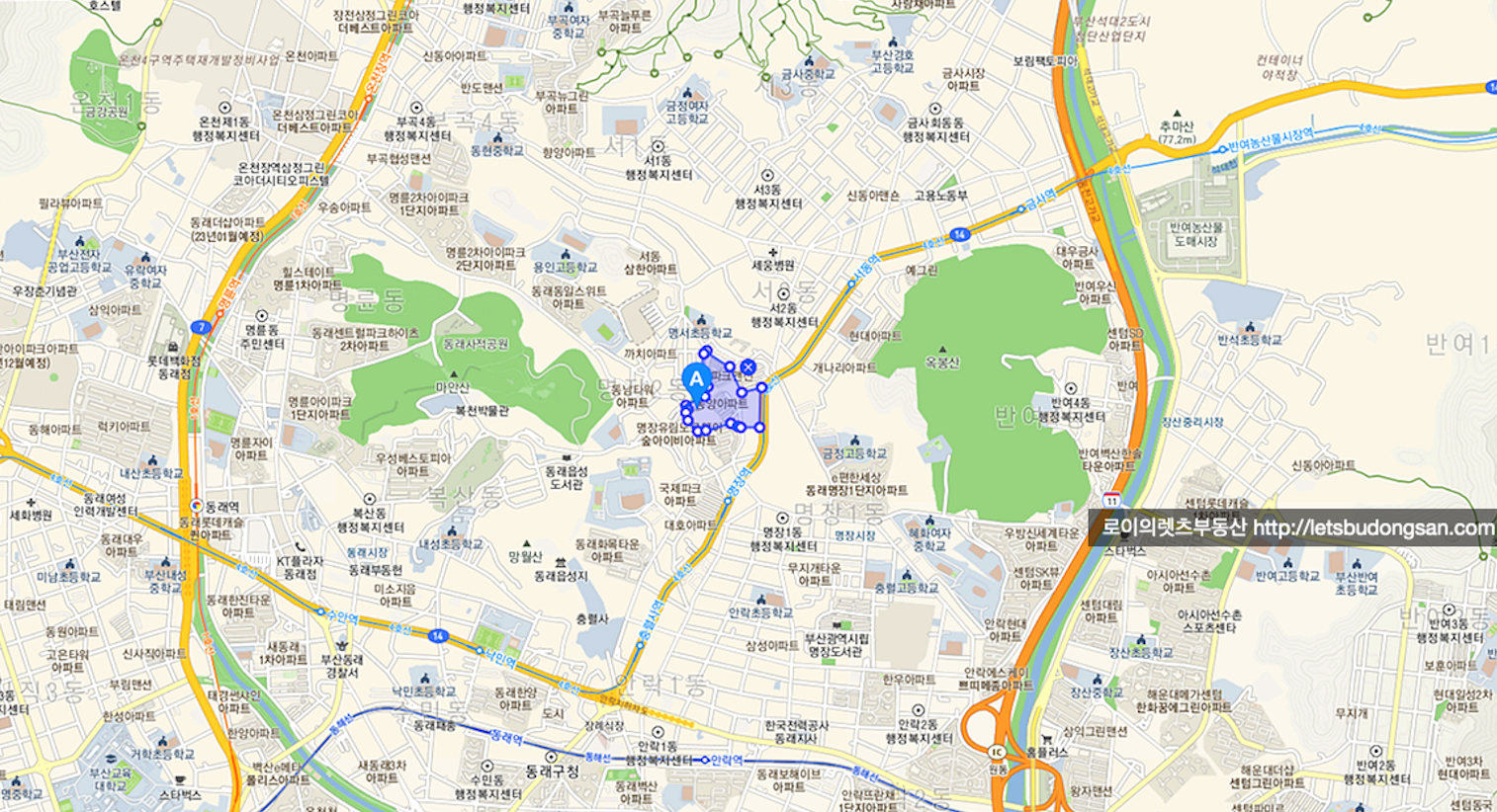가까이에 명장근린공원, 동래 사적공원이 위치해 있어서 숲세권의 장점을 가지고 있습니다.