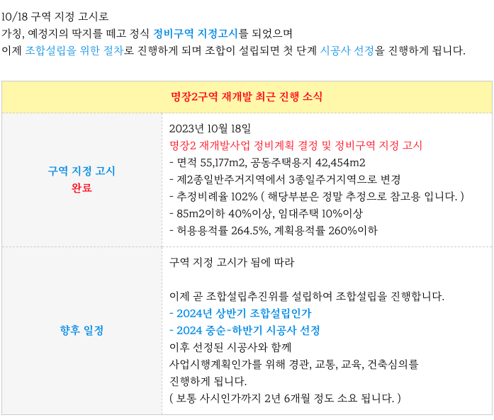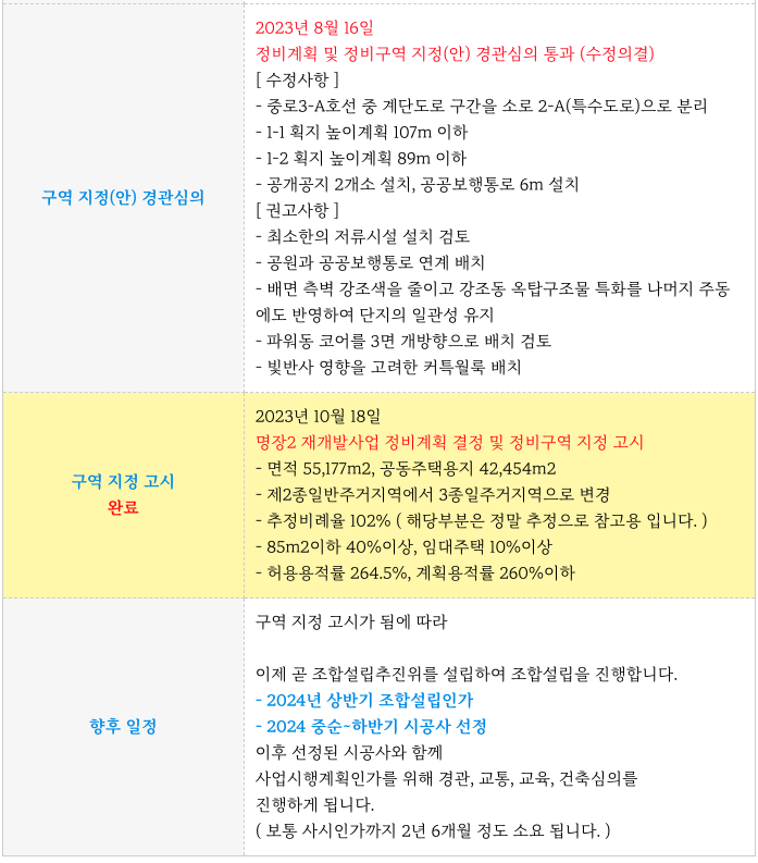 명장2구역 재개발 의 현재까지의 진행상황과 향후 예상 일정을 간략히 정리드립니다.