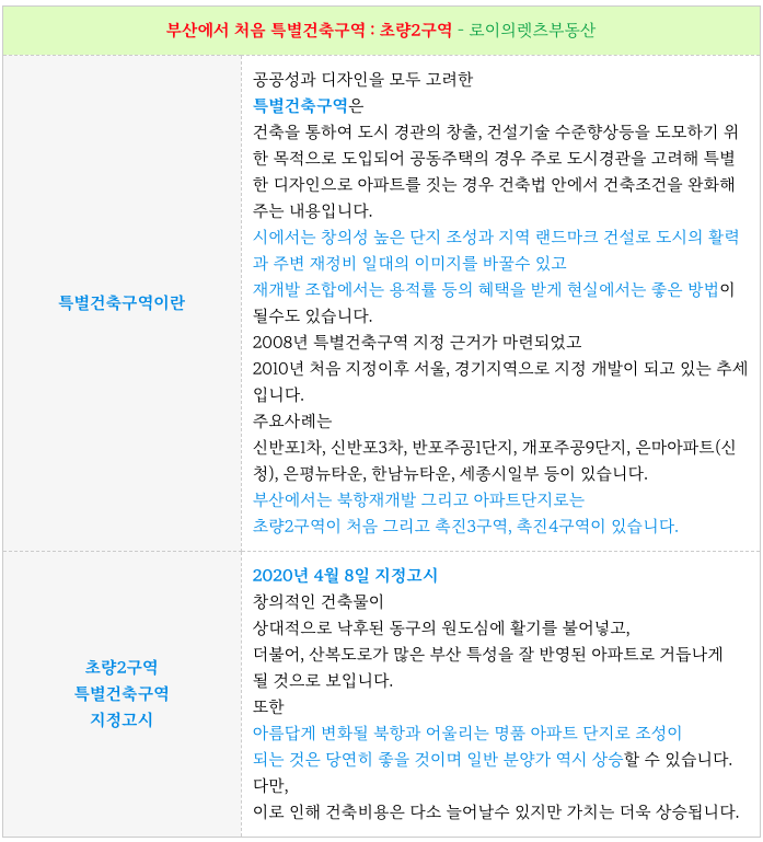 초량2구역 재개발 은 주거단지로 부산의 첫 특별건축구역 입니다.