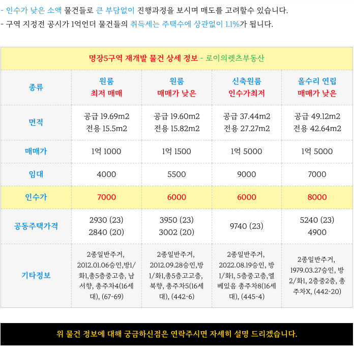 동래구 명장5구역 재개발 의 인수가 소액 매물 정보 정리 소개해 드립니다.