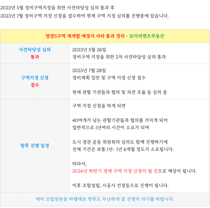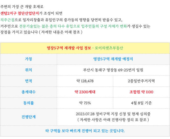 명장5구역 재개발의 진행 사항등 추가 정보는 아래 페이지를 참고 부탁드립니다.