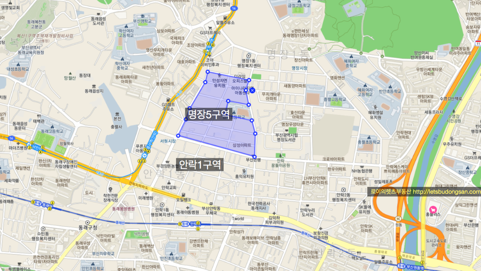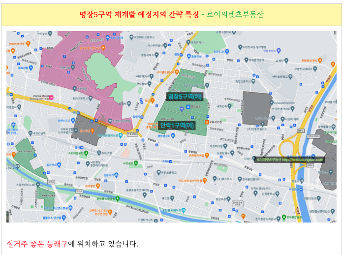 명장5구역, 안락1구역 재개발 예정지의 간략한 특징을 정리하여 드립니다.