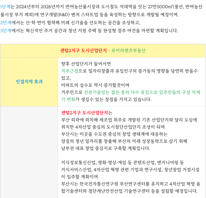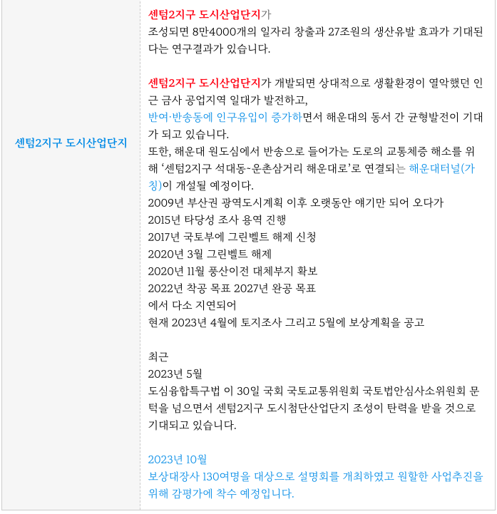 센텀2지구 도시산업단지의 내용을 간략히 정리하여 드립니다.