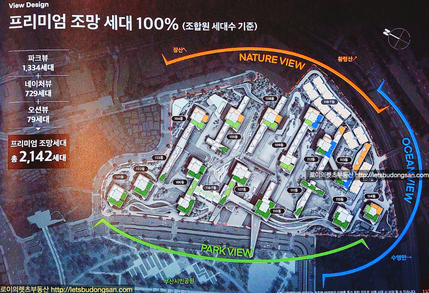 대부분의 평형이 동호수 추첨에 따라 시민공원 조망이 확정이 되기 때문에