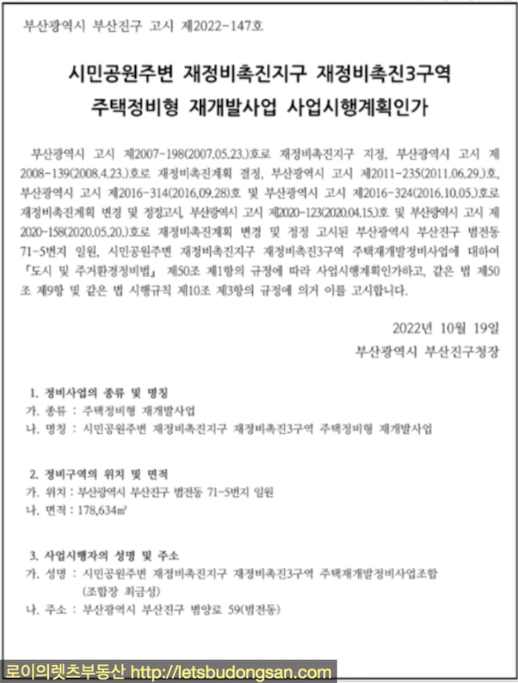 시민공원 촉진3구역 재개발의 간략한 특징 을 다시 한번 정리 드립니다.