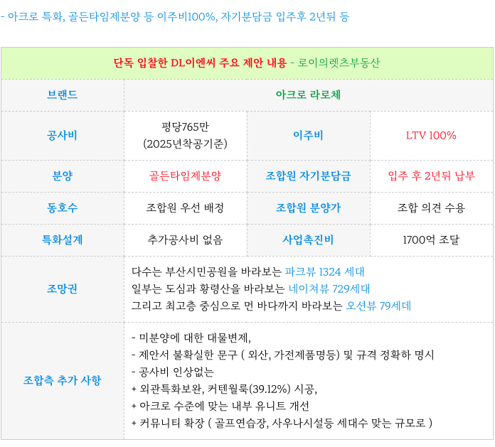 시민공원 촉진3구역 재개발 시공사 DL이엔씨 제안 내용을 간략히 정리 드립니다.