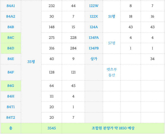 조합원분들은 각 타입까지 확정이 되어 있으나