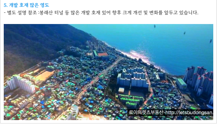 바다 조망 영도5구역 재개발 소액 매물과 진행