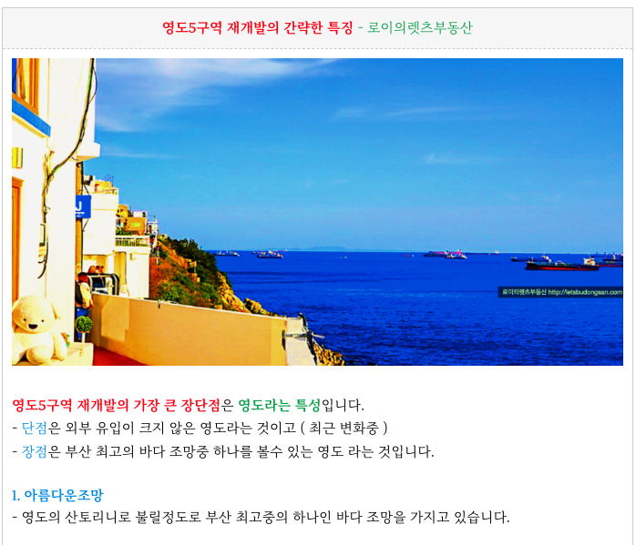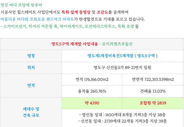 영도5구역 재개발의 진행상황과 향후 예상일정을 정리등 추가 정보는 아래 페이지를 참고 부탁드립니다.