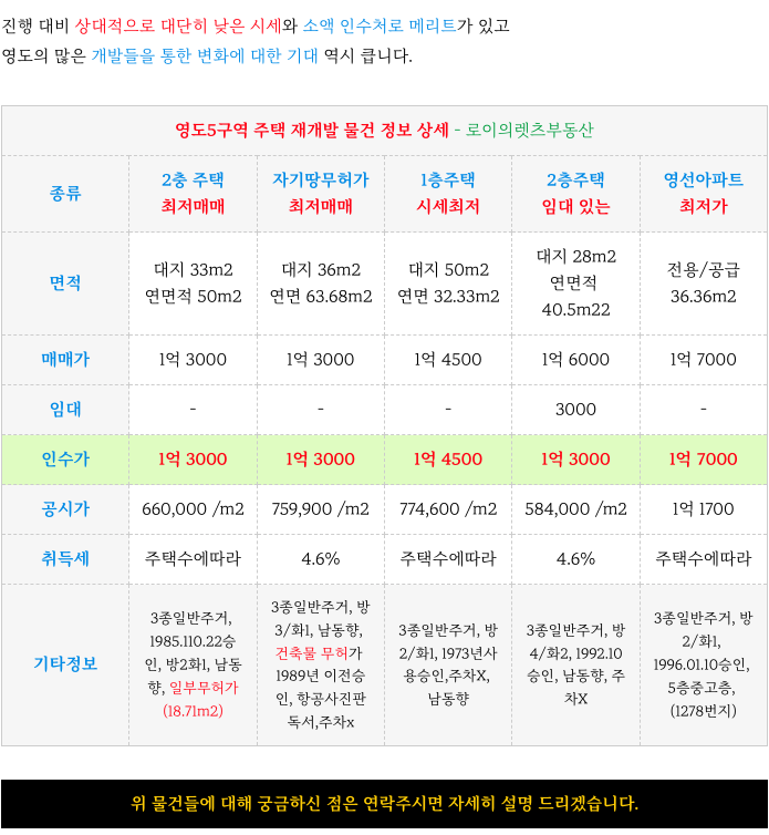 영도5구역 재개발 최저 매물들 소개 해드리겠습니다.