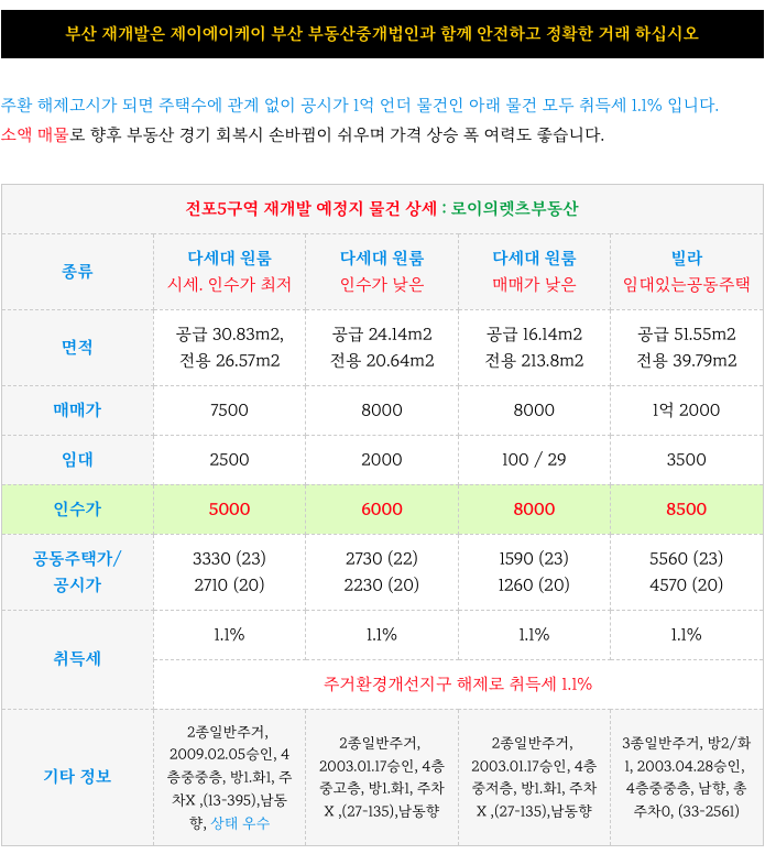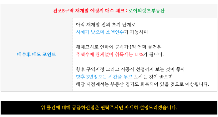 서면 생활권 전포5구역 재개발 예정지 인수가 최저 소액 매물등 소개해 드리겠습니다.