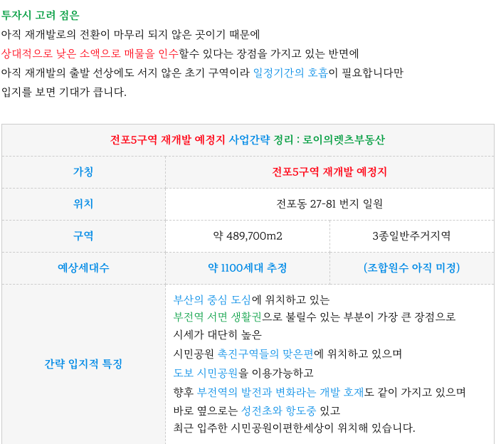 서면 생활권 - 전포5구역 재개발 예정지 - 최근 소식과 5000인수 등 소액 매물