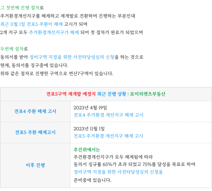 전포5구역 재개발 예정지 현재 진행상황 및 향후 진행 절차 등 추가 정보는 아래 페이지를 참고 부탁드립니다.