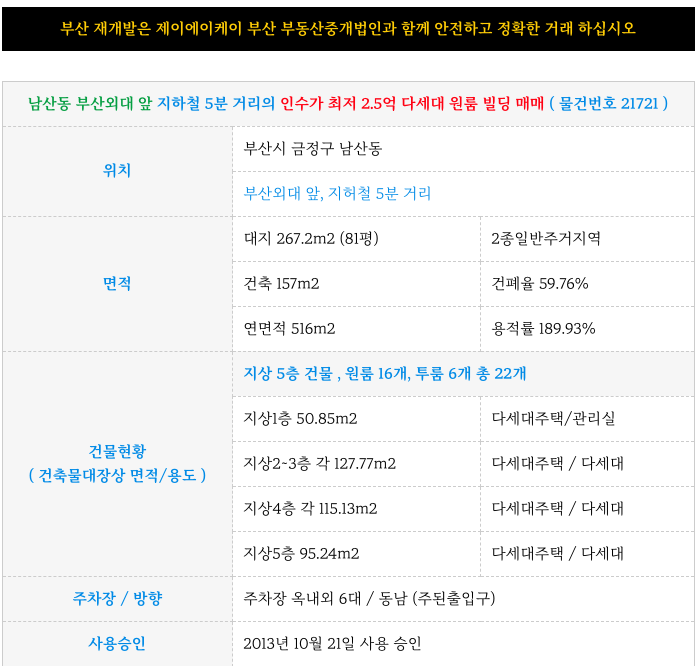 1번) 남산동 부산외대 아래 인수가 1.5 원룸 건물