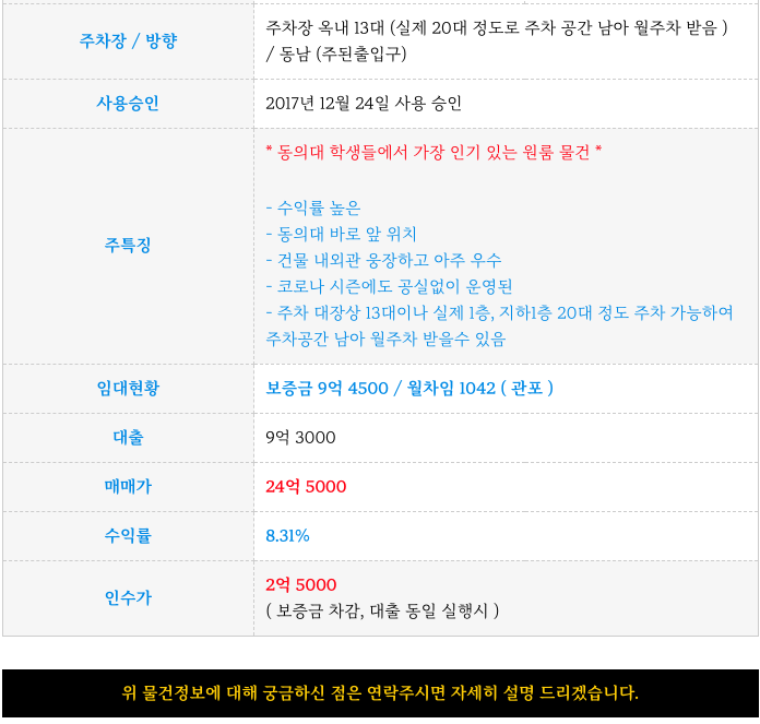 부산 원룸 건물 매매 - 1) 1.5 인수 2) 인기우수 공실 없는 - 2개 매물