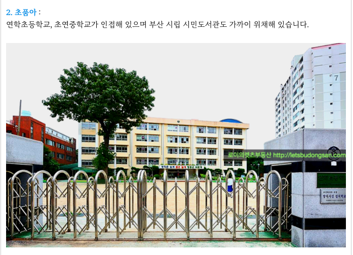 연학초, 초연중학교가 바로 가까이에 있는 초품아로 편리하게 도보 통학이 가능하고