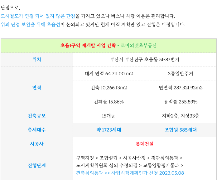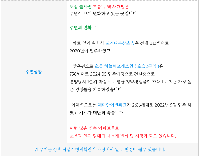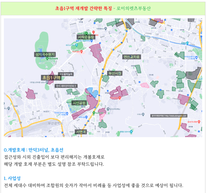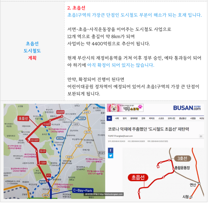 초읍1구역 재개발의 개발 호재를 간략히 정리하였습니다.