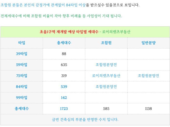 초읍1구역 재개발 현재 타입별 세대수 입니다.