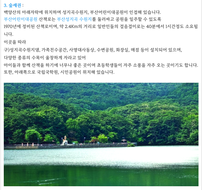 부산 도심내에 가까이 위치해 있으면서 숲세권을 느낄수 있는 곳으로의 큰 장점을 가지고 있습니다.
