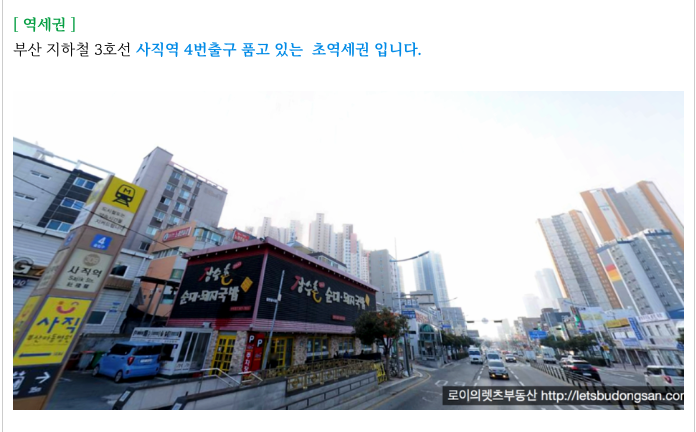 부산 지하철 3호선 사직역 4번출구에 접해 있는 초역세권이며