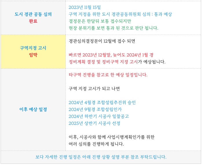 구역 지정을 위한 도시경관공동위원회 심의가 11월 15일에 있었습니다.