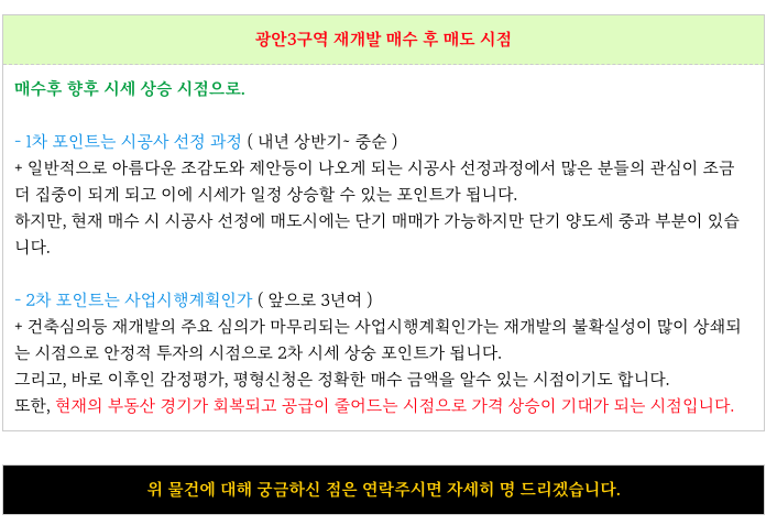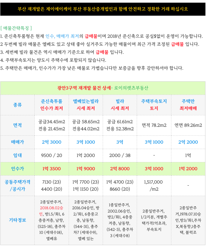 광안3구역 재개발 소액 추천 매물 정보 소개해 드리겠습니다.