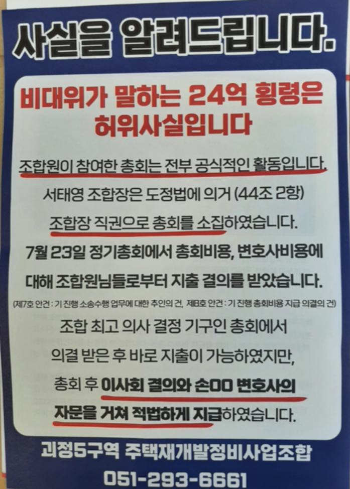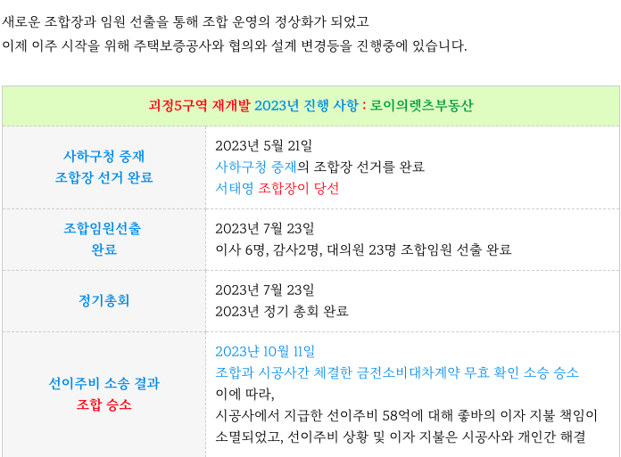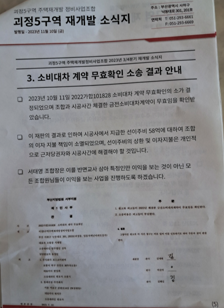 괴정5구역 재개발의 그동안 있던 여러 부분들을 하나 하나 처리하고 있습니다.