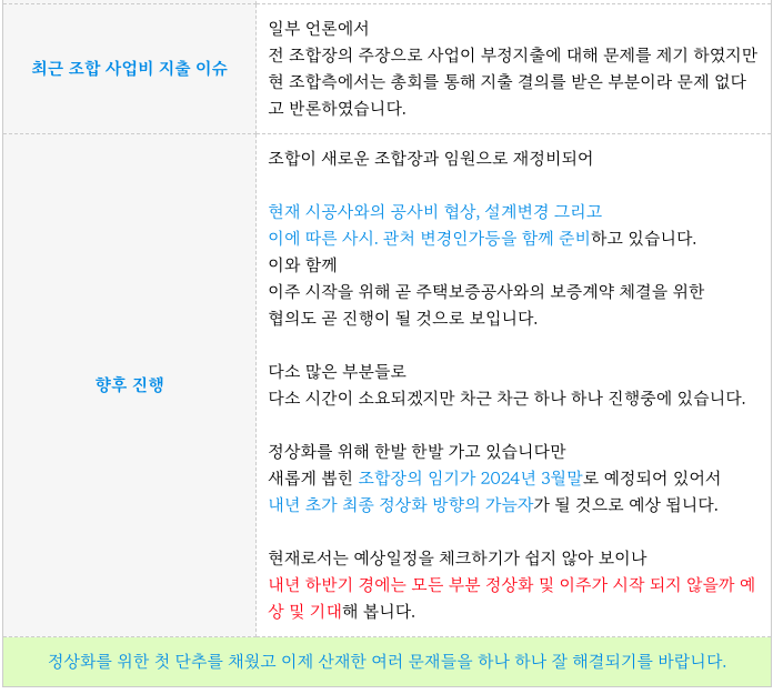 조합해임과 선출의 문제로 사업 지연이 계속 되었으나