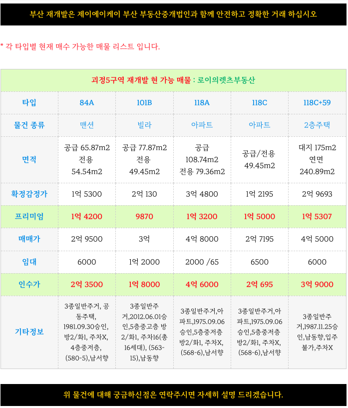 괴정5구역 재개발 현 최저 매물들을 소개해 드리겠습니다.
