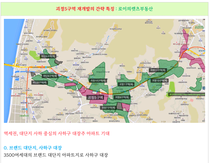 사하 대장주 괴정5구역 재개발의 간략 특징을 정리해 드립니다.