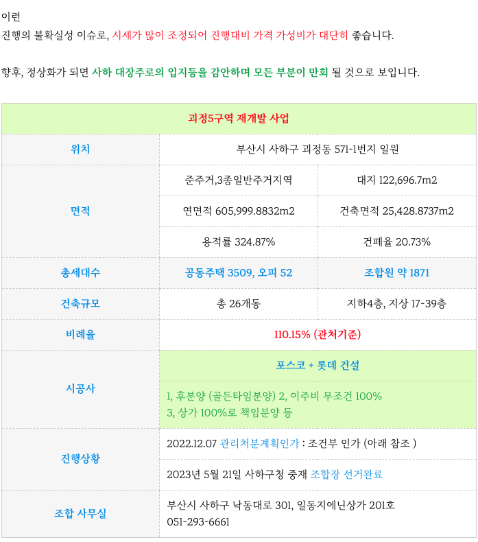 사하 대장주 - 괴정5구역 재개발 현 매물 & 진행상황