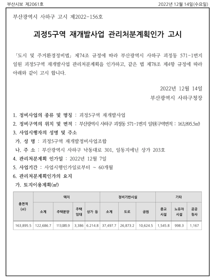 사하 대장주 괴정5구역 재개발의 진행부분 체크 및 예상 일정등 추가 정보는 아래 페이지를 참고 부탁드립니다.