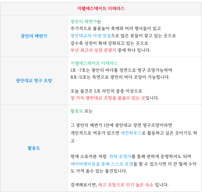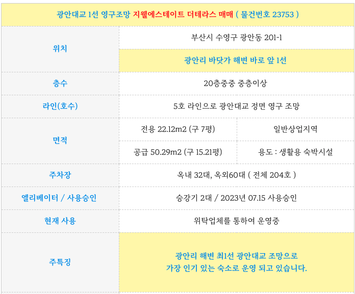 광안리 광안대교 영구조망 지웰에스테이트 더테라스 매매 물건