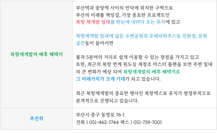 북항재개발를 바라보는 바로 앞에 위치해 있어 배후 주거단지, 혜택지로