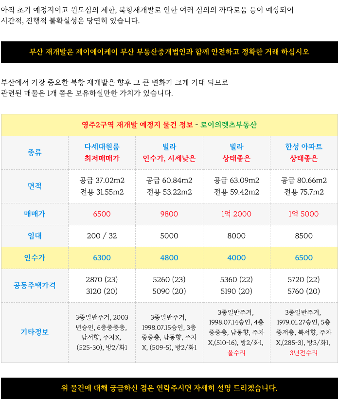 영주2구역 재개발 4000 인수가 등 소액 물건 정보 소개해 드립니다.