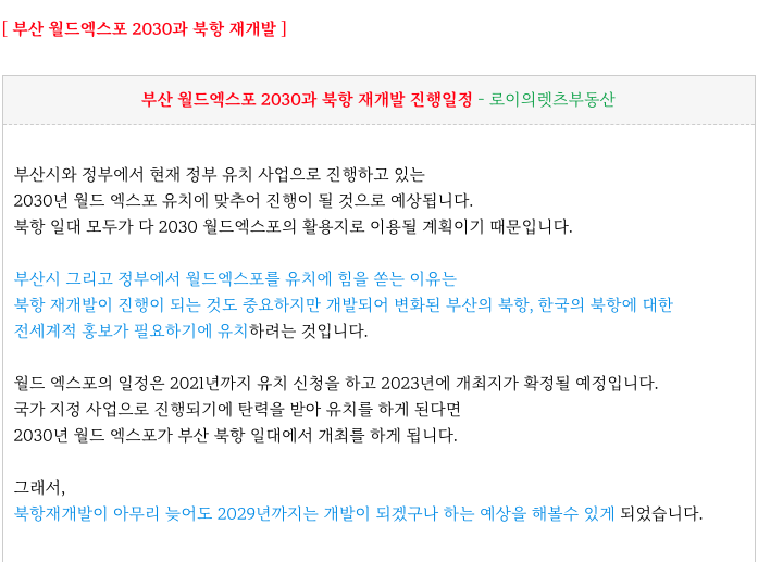 최근, 2030엑스포의 개최지 일정이 다가옴에 따라 북항재개발에 대한 관심이 더욱 커지고 있고