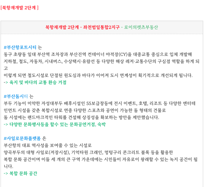 북항재개발 관련 내용들을 간력히 소개해 드립니다.