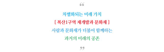 사람과 문화재가 더불어 함께하는 재개발 구역이라고 할 수 있습니다..